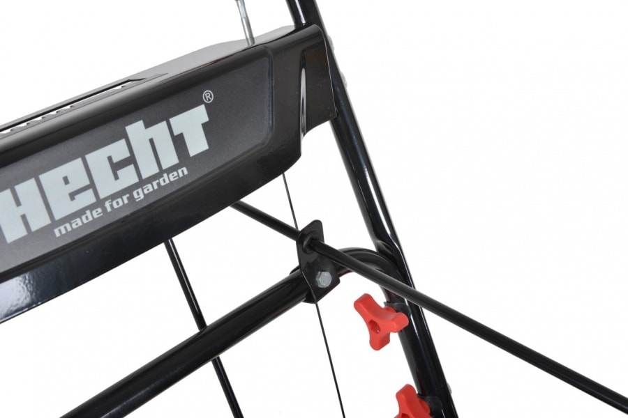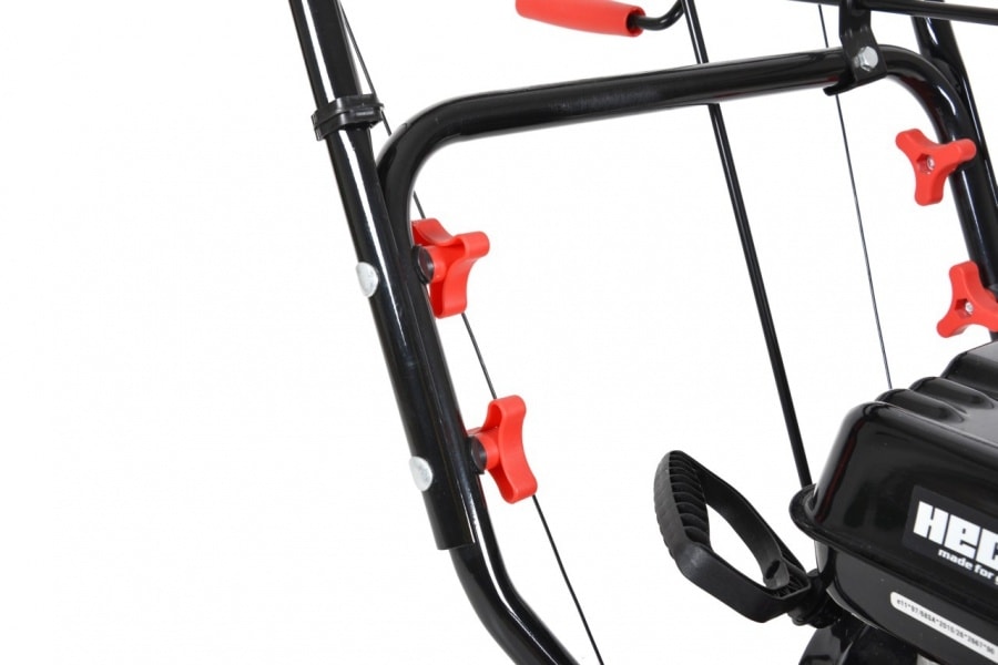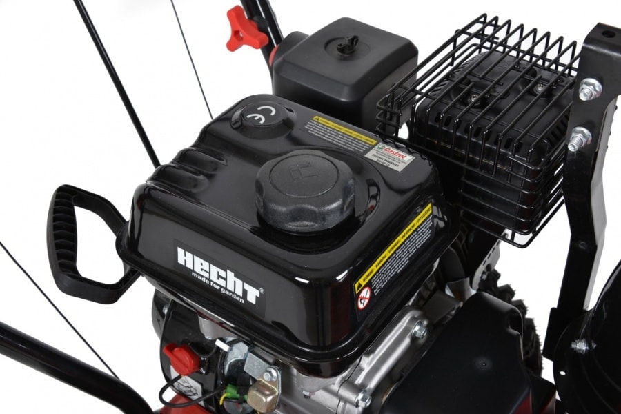 Prvý stupeň frézy rotujúci rýchlosťou až 124 otáčok za minútu sa pomocou oceľových zubov šneku zahryzne aj do zhutneného a zľadovateného snehu, ktorý tak upracete oveľa rýchlejšie. Druhý stupeň frézy potom pomocou turbíny odhodí sneh až do vzdialenosti 13 metrov. Smer vyhadzovania môžete nastaviť pohodlne priamo z miesta obsluhy kľukou umiestnenou pod hlavným panelom v rozsahu 190°. Pre zvýšenie bezpečnosti je komín vybavený aj vnútornou ochrannou pružnou mrežou, ktorá nijak nebráni plynulému vyhadzovaniu snehu. Je určená na ochranu obsluhy pred vážnym úrazom pri prípadnom nepozornom kontakte ruky s druhým stupňom frézy.