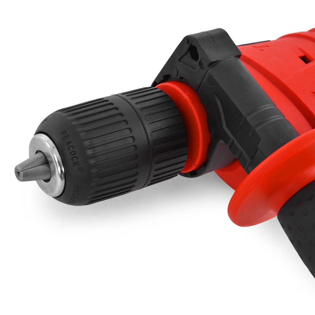 Maximálny priemer upínania skľučovadla je 13 mm. Otáčky sú plynule nastaviteľné od 0 do 3000 ot./min., frekvencia príklepu je až 48000 úderov za minútu. Ergonomicky tvarovaná rukoväť s protišmykovým povrchom dobre padne do ruky, pre pohodlné vŕtanie je možné využiť aj druhú pomocnú odnímateľnú rukoväť, ktorej súčasťou je aj mierka hĺbky vŕtaných otvorov. Požadované otáčky sú riadené štandardne silou stisku spúšte, maximálne otáčky potom ľahko nastavíte pomocou otočného ovládača priamo na spúšti. Samozrejmosťou je možnosť prepínania smeru otáčania, zapnutie a vypnutie príklepu alebo aretácia spúšte.