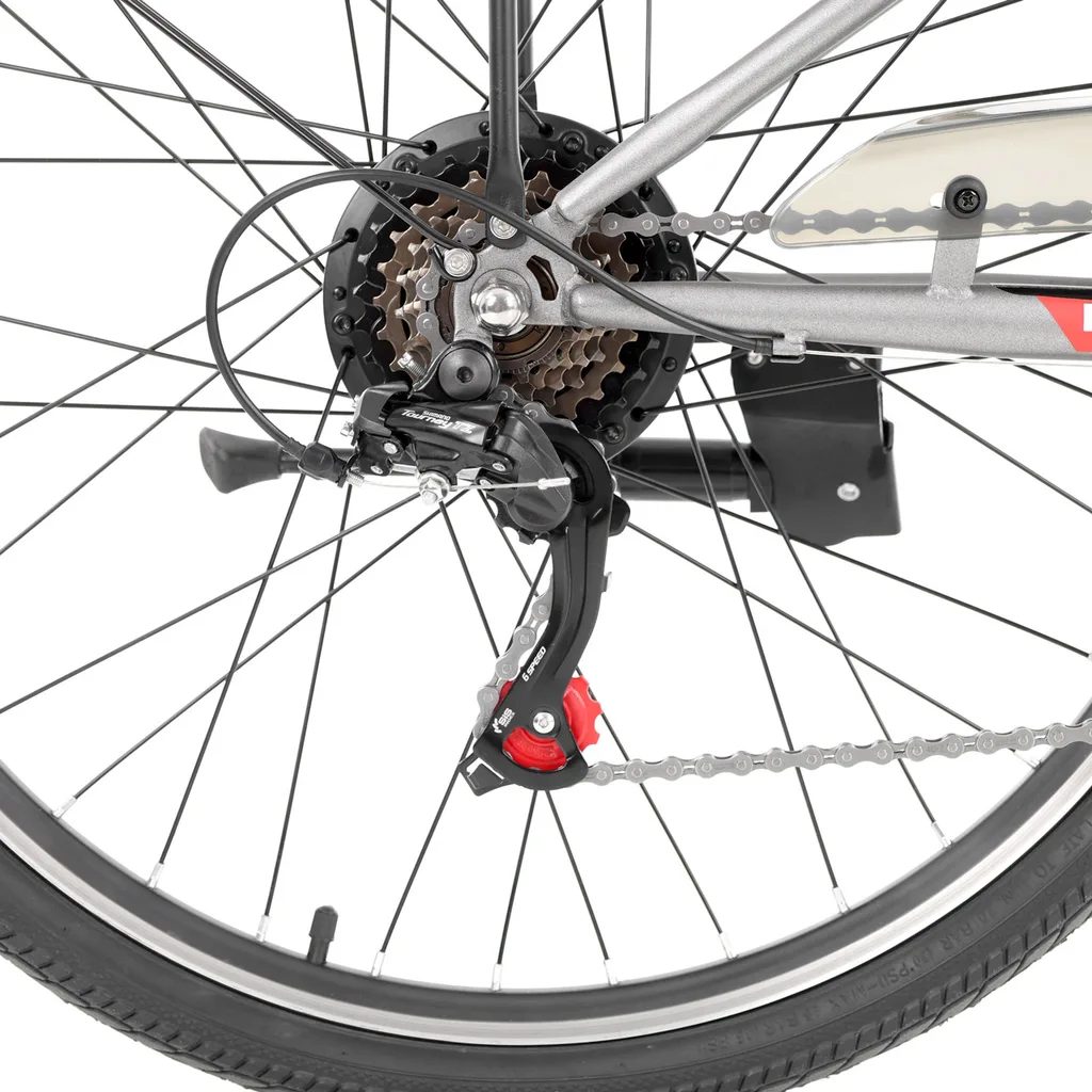 Robustný oceľový rám, kvalitná SHIMANO prehadzovačka so 6 prevodmi a pohodlné kolesá 26×1,75“ vám zaistia bezpečnú a pohodlnú jazdu za každých podmienok.