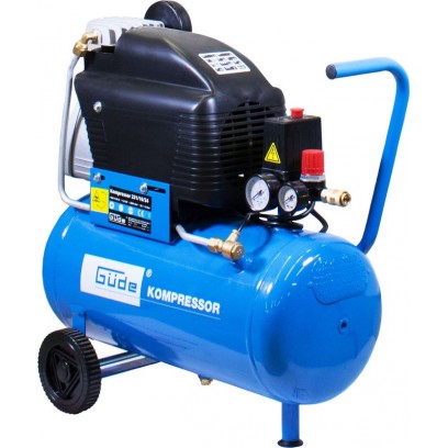 Jednovalcový kompresor s olejovým mazaním, s priamym pohonom. Tlakový spínač, manometer tlaku v nádobe a manometer pracovného tlaku, 2 spojky na stlačený vzduch, redukčný ventil pracovného tlaku, poistný ventil, spätný ventil, vypúšťací ventil na kondenzát, vzduchový filter. Noha s gumovým nárazníkom, plastové kolesá, prepravná rukoväť.