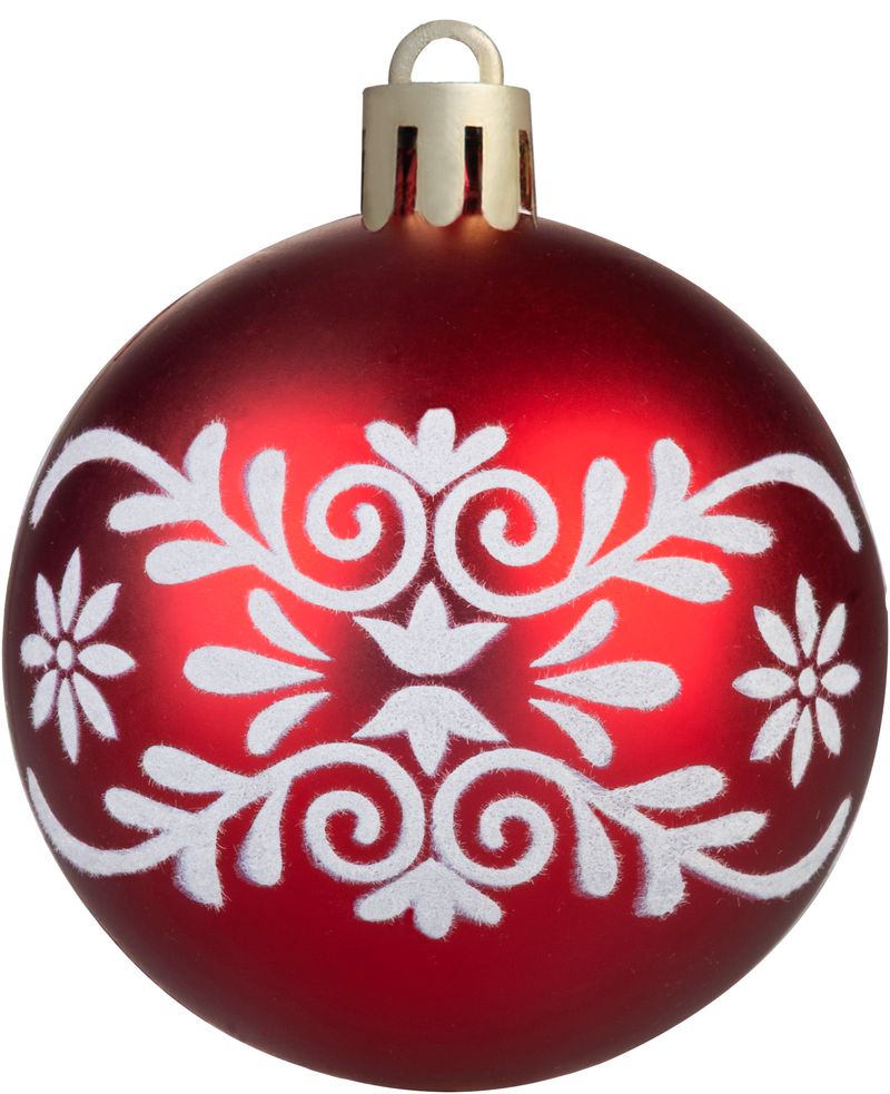 Súprava ozdôb na stromček slúži na slávnostné ozdobenie vianočného stromčeka. Pozostáva z 8 ks vianočných gulí s bielym ornamentom a s priemerom 6 cm. Farba gulí je červená. Sú vyrobené z plastu.