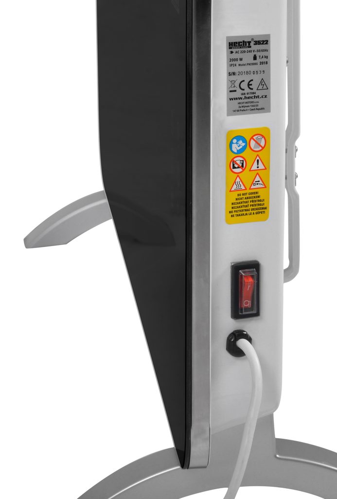 HECHT 3522 konvekčný priamotop s príkonom 2000 W. Čelný povrch z lesklého čierneho skla mu dáva luxusný vzhľad a preto iste neurazí v žiadnom interiéri. Dodávaný je s podstavcom, ktorý je ľahko demontovateľný a priamotop je možné aj zavesiť priamo na stenu. Rozmer je 92 x 43 cm. Hĺbka je 24 cm.