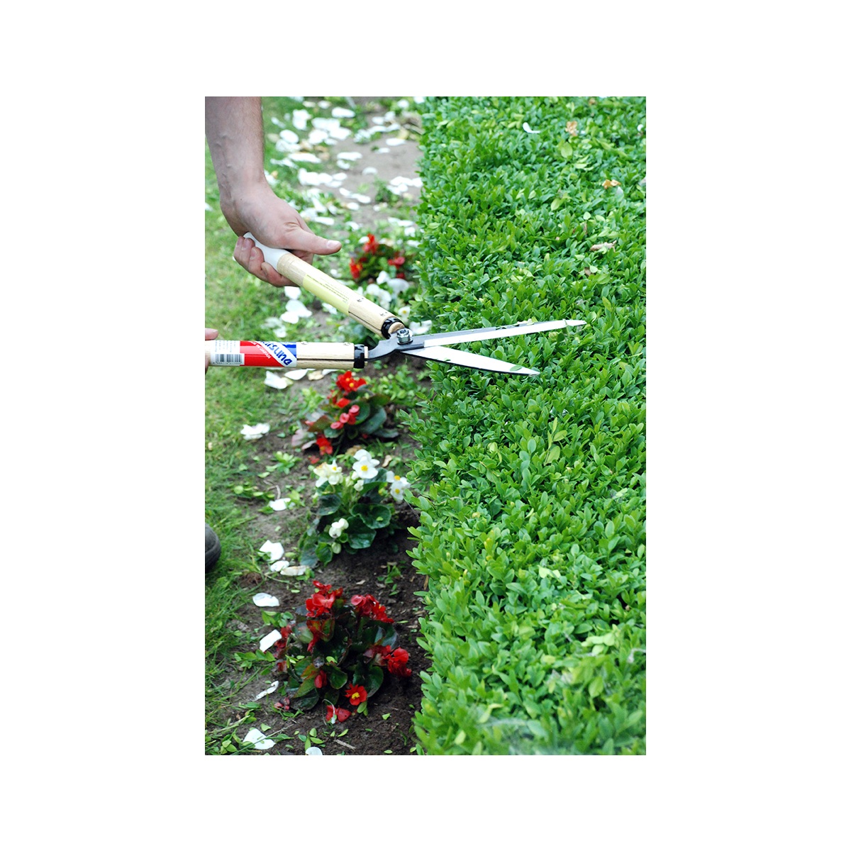Nůžky jsou vybaveny 30 cm dlouhými dřevěnými rukojeťmi, které poskytují výborný pákový efekt při střihu. Čepele o délce 175 mm jsou naostřeny ve dvou úhlech, což zajišťuje hladký, čistý a tichý střih s minimální námahou. S hmotností méně než 1 kg jsou navíc nůžky mimořádně lehké a dobře vyvážené, což oceníte zejména při delším používání. Skvěle padnou do ruky a umožňují přesnou práci i v hustších porostech, kde je třeba kombinovat sílu a jemnost v jednom nástroji.