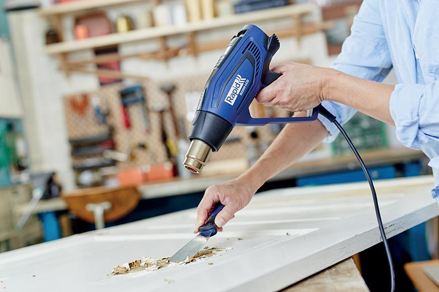 Pištoľ RAPID R2200-LCD je pokročilá teplovzdušná pištoľ pre náročné použitie, s LCD displejom, ktorý umožňuje presné nastavenie teploty s krokom po 10 °C v rozsahu od 50 °C do 650 °C. Spolu s extrémne vysokým výkonom 2200 W táto úroveň presnosti umožňuje efektívne použitie pre najnáročnejšie úlohy na širokom rade materiálov pri znížení rizika poškodenia. R2200-LCD tiež rýchlo dosahuje požadovanú prevádzkovú teplotu a optimalizuje tak efektivitu práce. Ochrana proti prehriatiu a indikátor zvyškového tepla umožňuje bezpečnú manipuláciu po použití a LED kontrolky uľahčujú nastavenie prúdu vzduchu a teploty. Vysoko stabilný podstavec na prácu na stole alebo pracovnú lavicu a ergonomická mäkká rukoväť umožňuje jednoduché a pohodlné používanie pištole. Dodáva sa v praktickom kufríku.