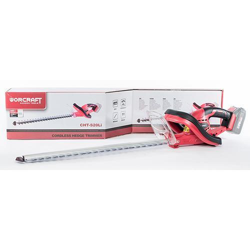 Akumulátorové nožnice Worcraft CHT-S20Li sú určené výlučne na strihanie živých plotov, kríkov a krovín. Nožnice s lištou dlhou 56 cm disponujú dĺžkou zuba 20 mm. Preto je pred použitím akumulátorových nožníc potrebné odstrihnúť všetky vetvy s priemerom väčším než 20 mm nožnicami na konáre! Výkonné nožnice pracujú rýchlosťou 1050 otáčok za minútu.