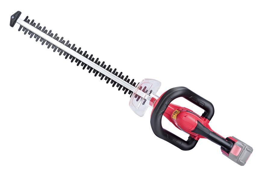Nožnice sú vybavené protišmykovou rúčkou, ktorá zaisťuje pevné a pohodlné uchopenie. Bezpečnostná čepeľ má zaoblené boky pre zníženie nebezpečenstva poranenia. Dodatočná ochrana proti nárazom zabráni nepríjemnému spätnému rázu, keď sa čepeľ dostane do styku s múrom alebo plotom. Nožnice sa nabijú za 1 hodinu. Akumulátor a nabíjačka nie sú súčasťou balenia!