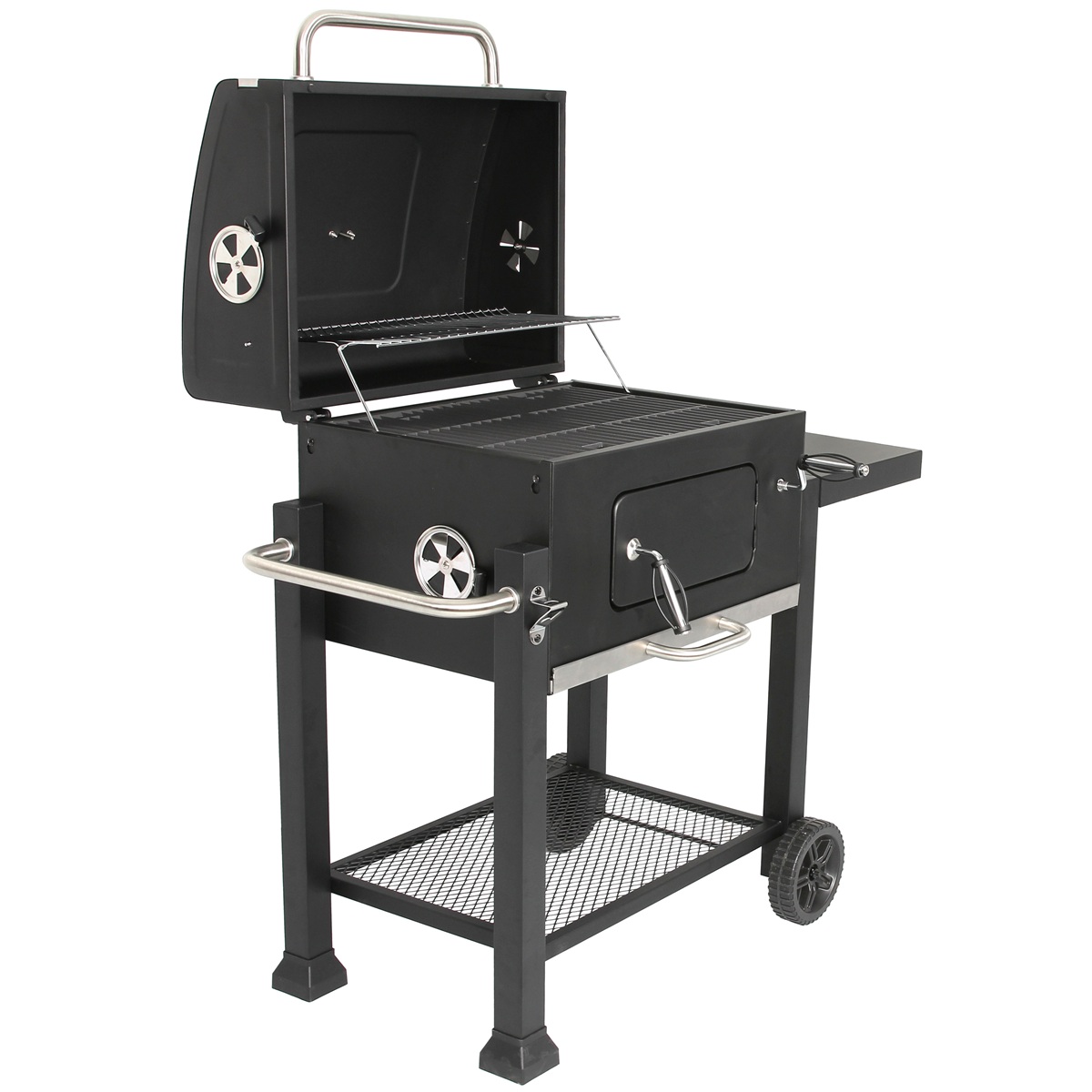 prostorný gril na dřevo nebo dřevěné uhlí s tradičním designem vhodný jak pro menší oslavy, tak i středně velké grilovací párty