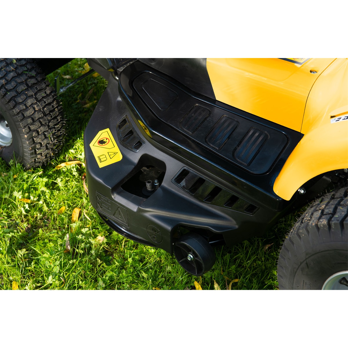 • velká kola (vpředu 15″ a vzadu 18″) pro lepší komfort jízdy, překonávání nerovností a ochranu trávníku