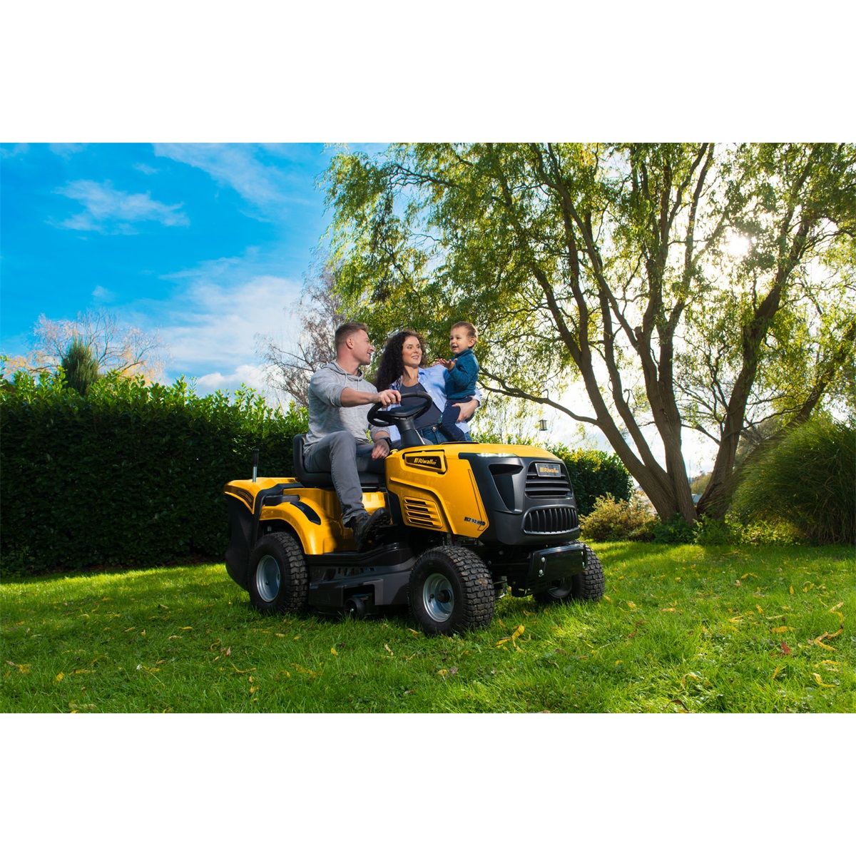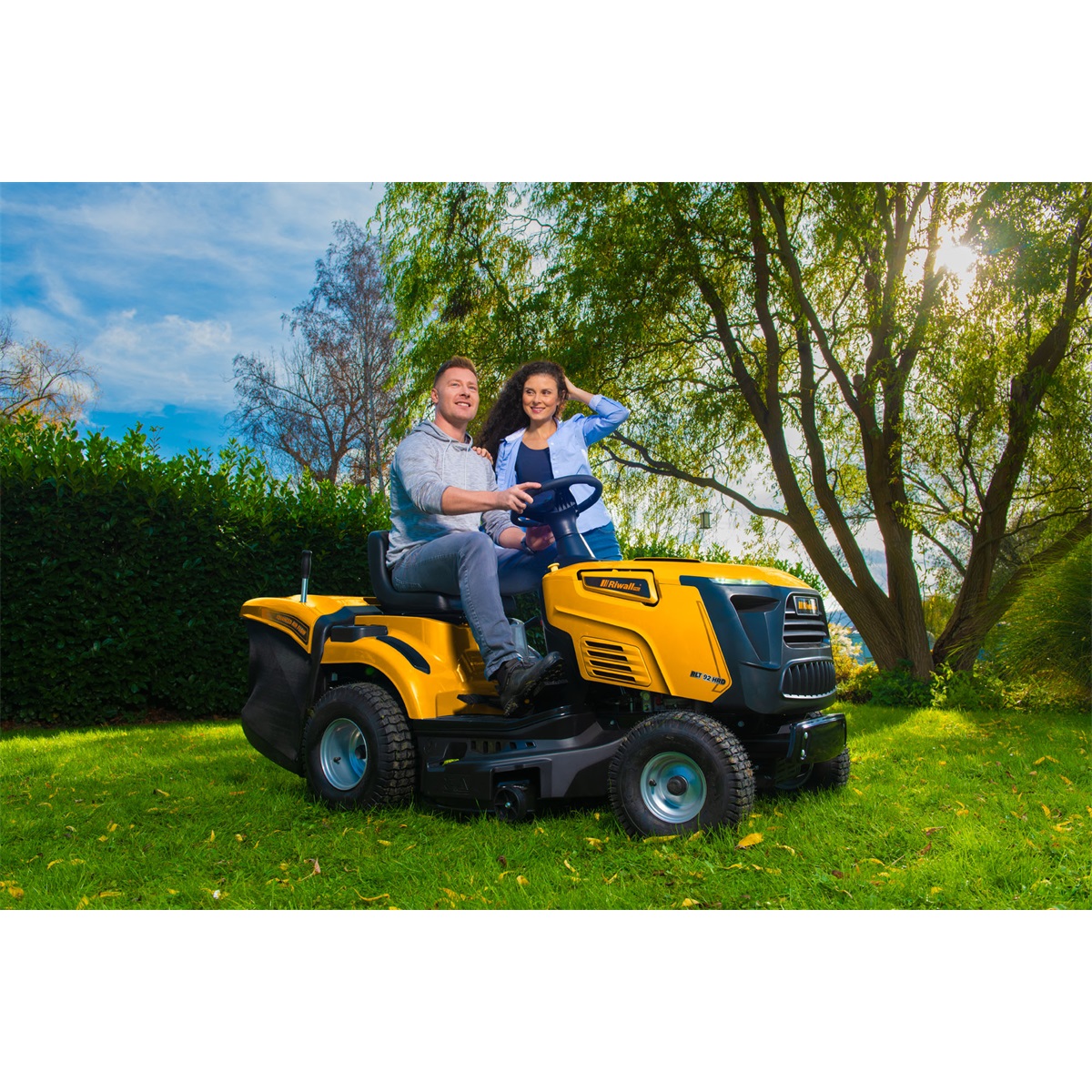 • sečení i při couvání – běžné zahradní traktory vypnou sečení při jízdě vzad, což často u členitých zahrad znamená stálé vypínání a zapínání sečení. U stroje Riwall můžete pomocí bezpečnostního tlačítka nechat zapnuté sečení i při couvání.