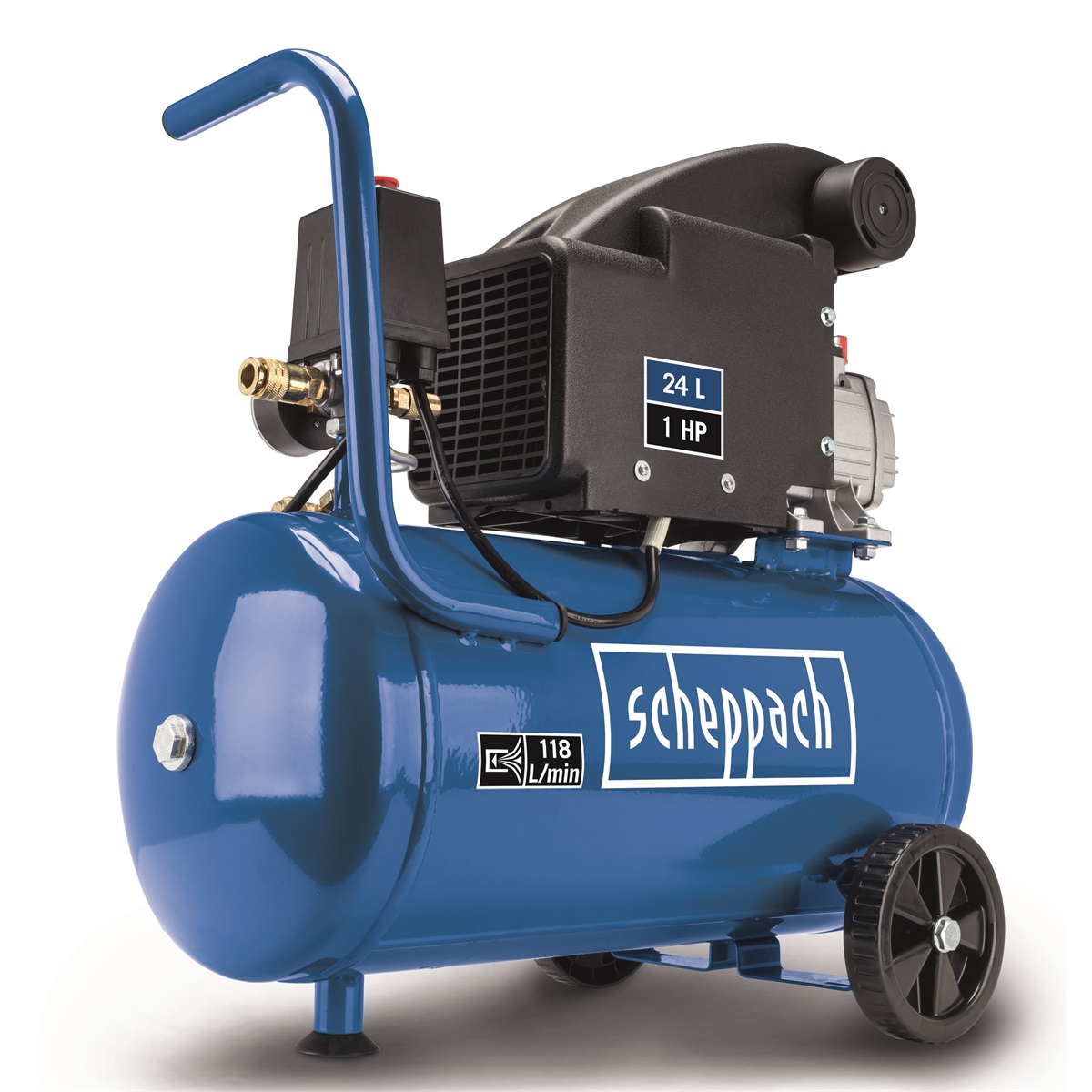 Kompresor Scheppach HC 24-8 je spolehlivý stroj, který se hodí na všechny běžné práce spojené s huštěním nebo ofukováním. Kompresor pohání moderní úsporný motor o výkonu 750 W, který zajistí rychlé natlakování vzdušníku o objemu 24 l. Vzdušník slouží jako zásobárna stlačeného vzduchu a motor se tak automaticky zapíná jen v případě, že tlak vzduchu klesne pod požadovanou úroveň. Pumpa stroje je mazána olejem, což zajišťuje dlouhou životnost celého kompresoru i při častějším používání. Kontrola stavu oleje je velmi jednoduchá a provádí se zběžným pohledem pomocí optického ukazatele umístěném na stroji. Kompresor je vybaven manometrem vzdušníku, tlakovým spínačem a odkalovacím ventilem. Výstup na vzduch je opatřen rychlospojkou. Přídavné madlo a kolečka umožní snadnou manipulaci se strojem, antivibrační podstavec zase zajistí klidný chod stroje.