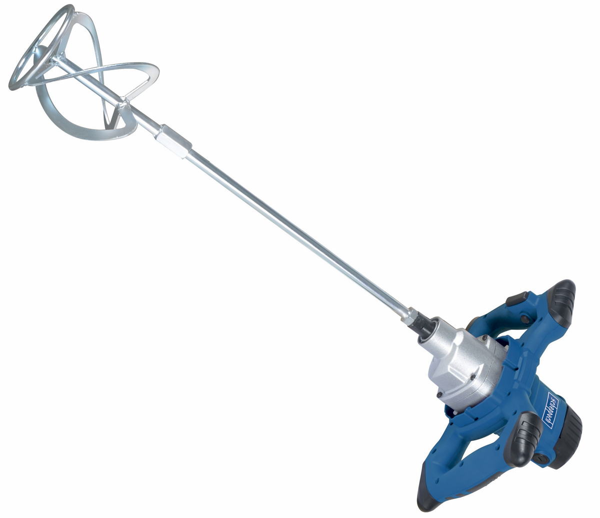 - Miešadlo má veľmi príjemné mäkčené ergonomické rukoväte v tvare D, bezpečnostný spínač a plynulú reguláciu otáčok 0 – 700 ot./min., vďaka ktorej je možné nastaviť rýchlosť miešania podľa potreby konkrétneho materiálu
