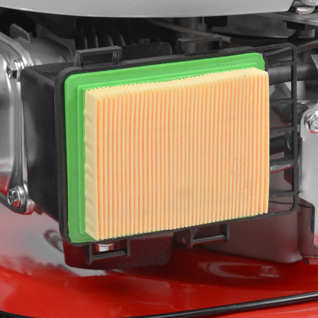 Kosačka je poháňaná osvedčeným HECHT OHV motorom. Kosačka je vybavená elektrickým štartérom, vďaka ktorému je kosačka vhodná aj pre seniorov a ženy, ktoré môžu mať problém so štartovaním pomocou tiahla. Avšak aj táto možnosť štartovania zostala u kosačky zachovaná. Elektrický štartér je napájaný z 12 V akumulátora, ktorý je umiestnený v paneli na madle kosačky. Štartovanie je vykonávané pomocou tlačidla na madle. Tlačidlo je možné ľahko vybrať a uschovať, aby sa predišlo nechcenému naštartovaniu napríklad deťmi. Spoločne s kosačkou je dodávaná aj nabíjačka akumulátora.