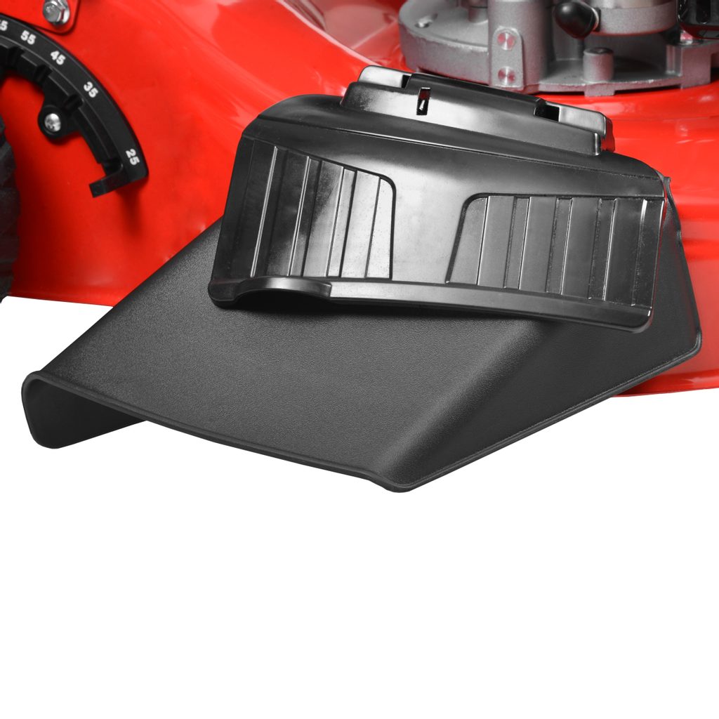 Stabilný a pevný kovový skelet je opatrený otvorom so záslepkou pre bočné vyhadzovanie. Súčasťou dodávky je aj kryt bočného vyhadzovania, ktorý umožní kosiť trávu v režime bočného vyhadzovania. Vďaka tomu je možné kosiť aj ľahko prerastenú trávu, bez toho aby sa kosačka hltila a obsluha šliapala v pokosenej tráve.