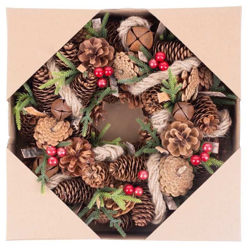 Veniec MagicHome by nemal chýbať vo výbave vášho interiéru počas vianočných sviatkov. Je to vkusný veniec so šiškami. Jeho rozmer je 30×8 cm.